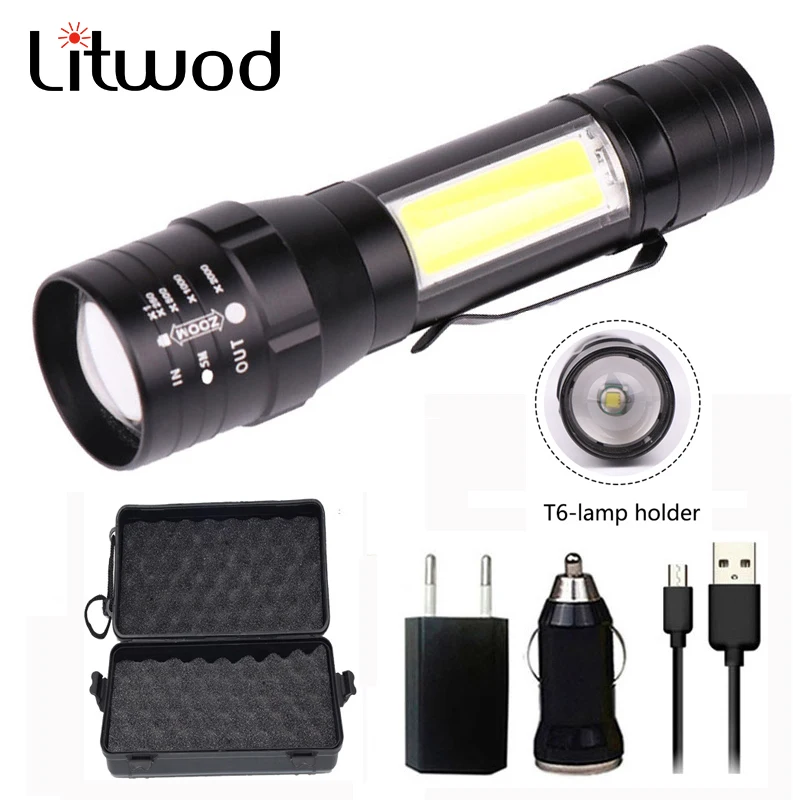 Litwod CREE XM-L2 T6 Z203101 УДАРА встроенный аккумулятор светодио дный перезаряжаемый фонарь Алюминий сплав фонарь для кемпинга свет