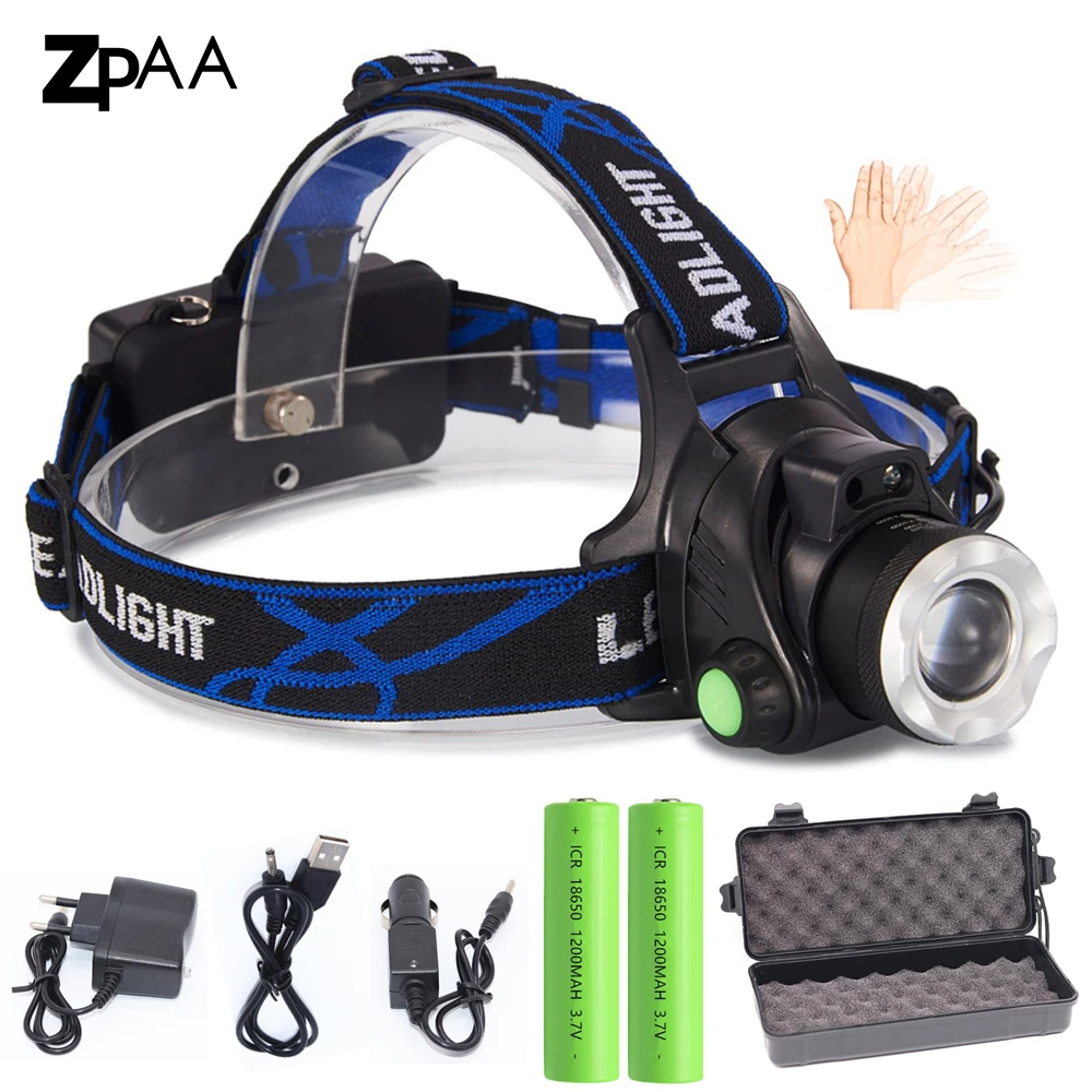 Супер яркий светодиодный налобный фонарь L2/T6, масштабируемый налобный фонарь, налобный фонарь 18650, аккумулятор для рыбалки, охоты, скалолазания
