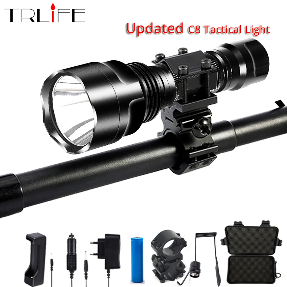 Светодиодный фонарь L2 T6 8000LM тактический фонарь Алюминий охотничий фонарь факел лампы + 18650 + Зарядное устройство + артиллерийская установка
