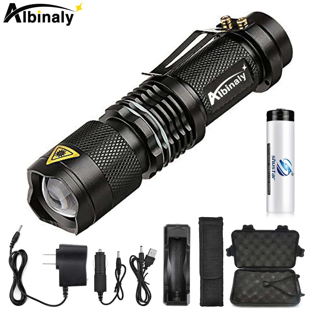 USB светодиодный фонарик высокомощный, перезаряжаемый факел 2000 люмен Q5 XML T6 3-режима Масштабируемые 16340 18650 вспышка света для наружной