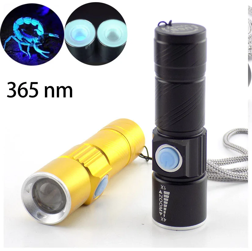 365nm UV Led вспышка светильник USB Перезаряжаемый черный светильник zoom вспышка лампа светильник фонарь светильник ing для домашних животных пятна...