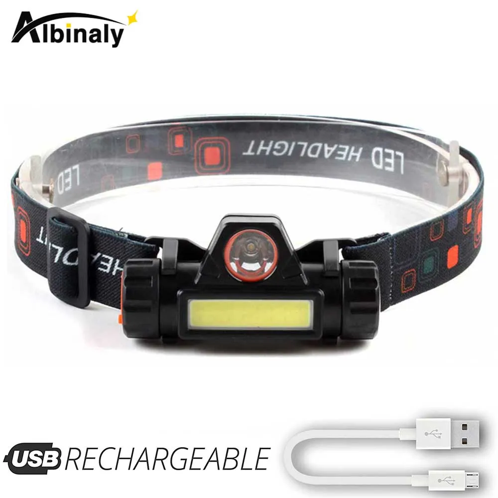 Светодиодный налобный фонарь USB перезаряжаемые XPE + COB светодиодный налобный фонарик на Налобная Лампа 18650 для кемпинга Рабочая восхождение