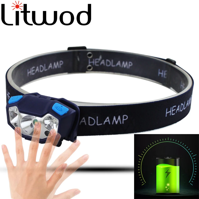Встроенный аккумулятор 5000 люмен, светодиодный налобный фонарь USB перезаряжаемая Рабочая лампа 3 режима света водонепроницаемая фара для ры...