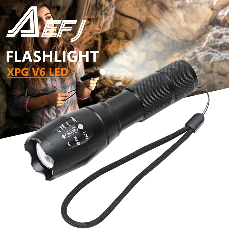 3000 люмен светодиодный тактический фонарь T6/L2/V6 портативный фонарь 5 режимов Регулируемый Фокус Водонепроницаемый IPX6 на 18650 Аккумулятор для кемпинга