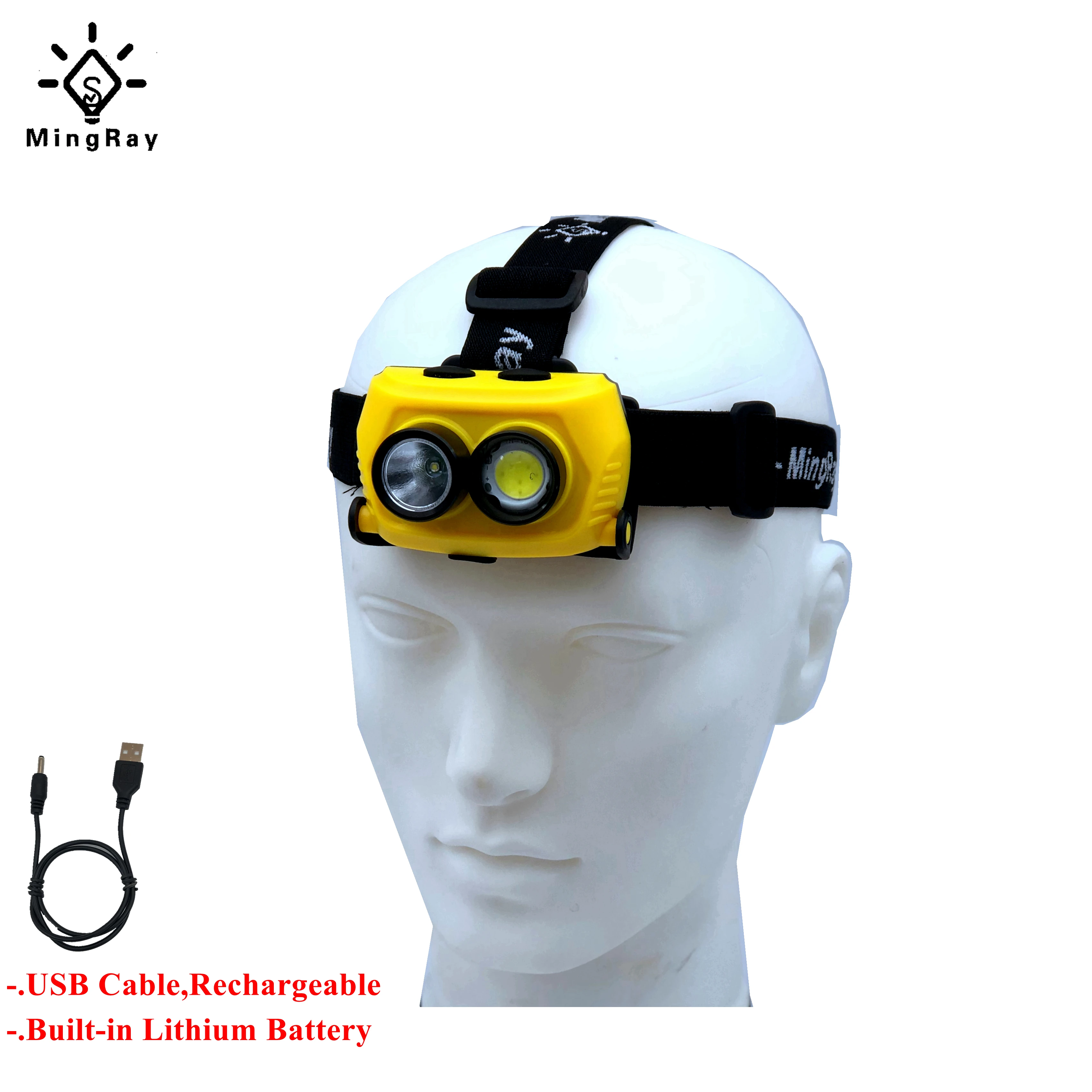 MingRay USB Перезаряжаемый налобный фонарь для рыбалки с литиевой батареей CREE 3 Вт светодиодный фонарик для кемпинга на голову из пластика