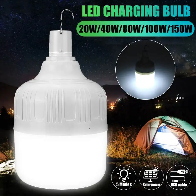 20 Вт/40 Вт/80 Вт/100 Вт/150 Вт 5 режимов перезаряжаемая Светодиодная лампа USB лампа с солнечным зарядным устройством аварийный ночной рынок свет для наружного кемпинга дома