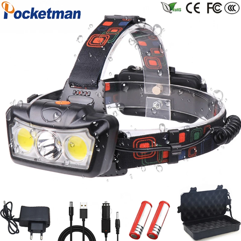 35000лм портативный налобный фонарь T6 + 2 * COB светодиодный налобный фонарь для использования 2*18650 Аккумулятор для кемпинга рыбалки