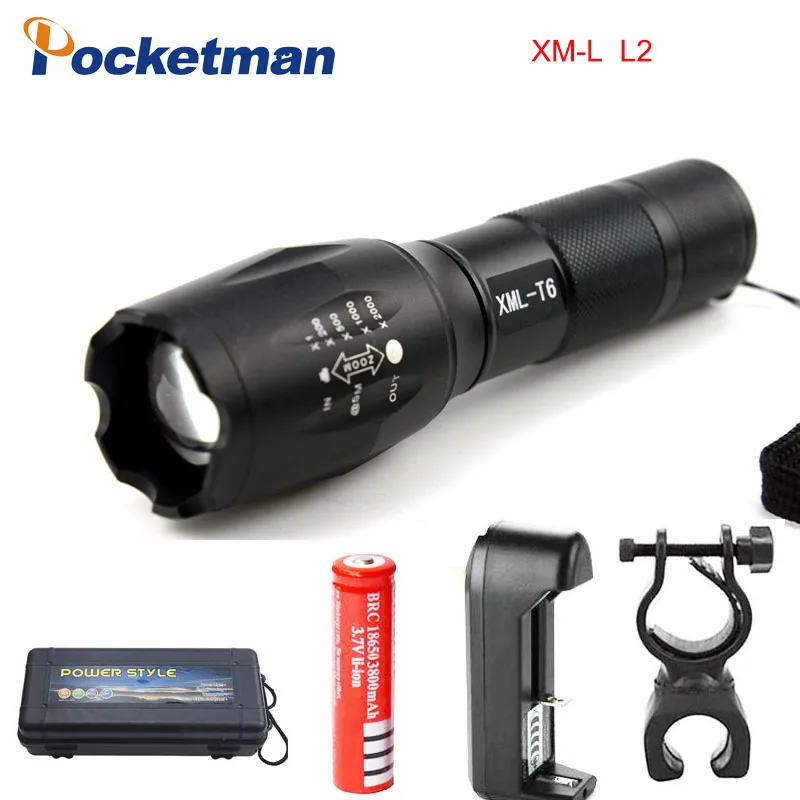 Фонарик E17 XM-L2 8000LM Тактический светодио дный Факел Увеличить светодио дный фонарик Torch light для 3xaaa или 1x18650