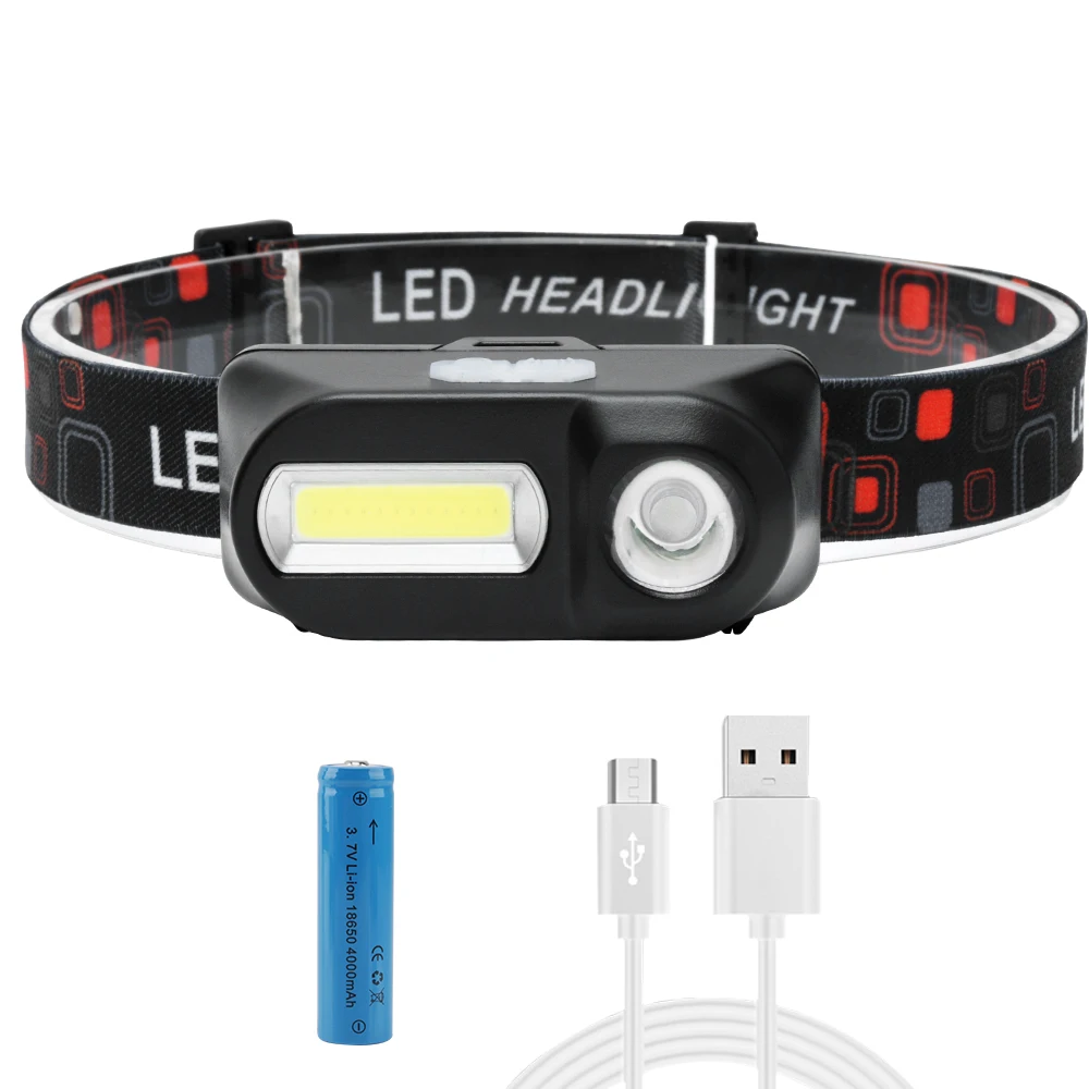 Перезаряжаемый налобный фонарь супер яркий XPE + COB налобный фонарь USB Водонепроницаемый налобный фонарь со встроенным аккумулятором Кемпинг Туризм Рыбалка