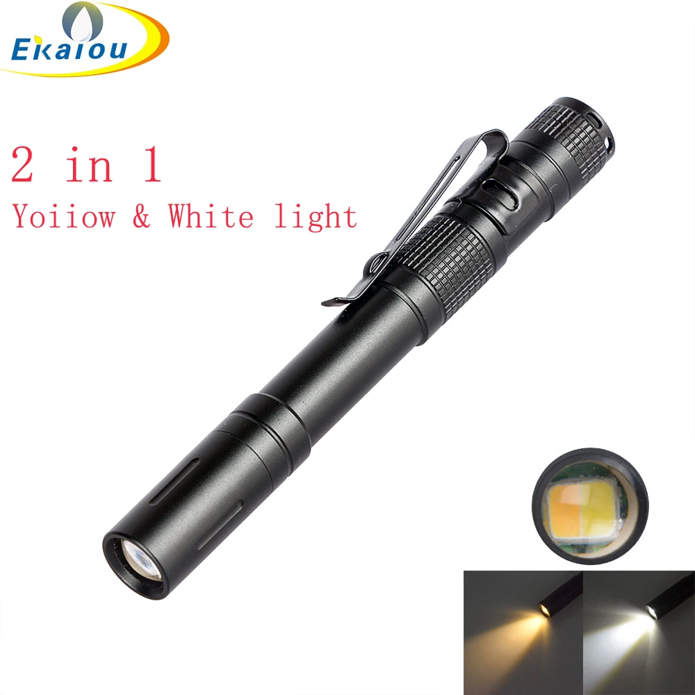 Новый 2 in1White свет желтая лампа медицинская Бытовая мини светодиодный фонарик 2 AAA 1 Вт ручка клип аварийное освещение факел