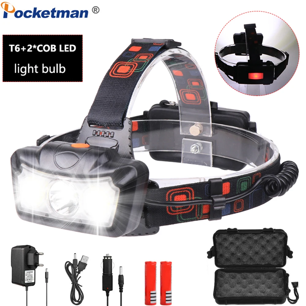 12000LM портативный мини Мощный светодиодный налобный фонарь встроенный аккумулятор T6 + COB USB перезаряжаемая фара Водонепроницаемая головная л...