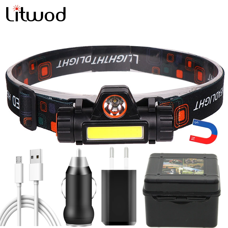 Litwod Z20 7314 18650 лм USB налобный фонарь 2 шт. XM-L T6 светодиодный перезаряжаемый налобный фонарь с зарядным устройством