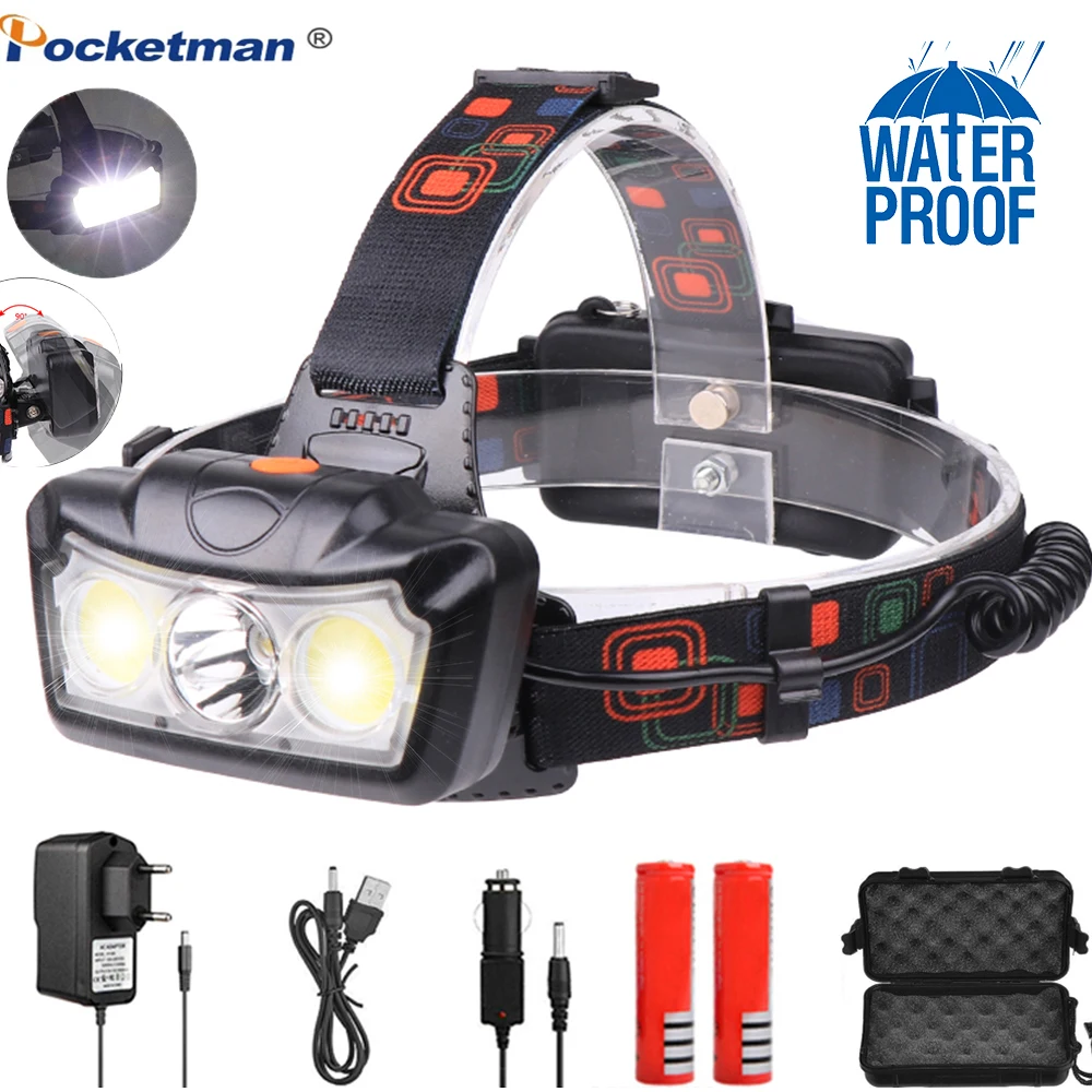 6000лм светодиодный налобный фонарь T6 + COB светодиодный налобный светильник, налобный фонарь, фонарь, налобный светильник, использовать 2*18650 батареи для кемпинга
