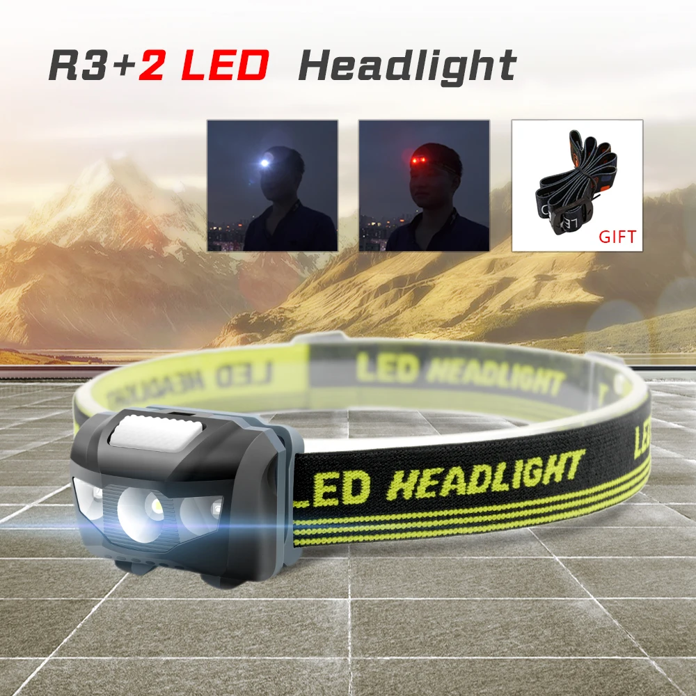 ANYIGE мини фара 4 режима Водонепроницаемый 600Lm R3 + 2 светодиодный фонарик очень яркий Фонарь налобный фонарь Факел Lanterna Применение AAA Батарея