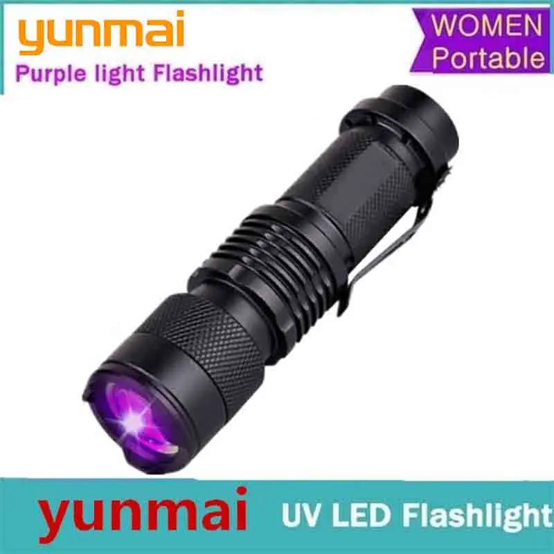 Мощный мини зум портативный УФ 395nm светодиодный фонарик фиолетовый черный свет Torche лампа использовать батарею AA/14500