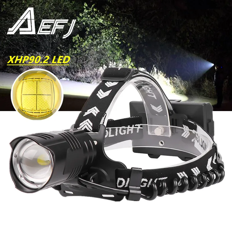 Мощный светодиодный налобный фонарь AEFJ XHP90.2 с зарядкой от USB, налобный фонарь с водонепроницаемым зумом, Фонарь для рыбалки на аккумуляторе 18650