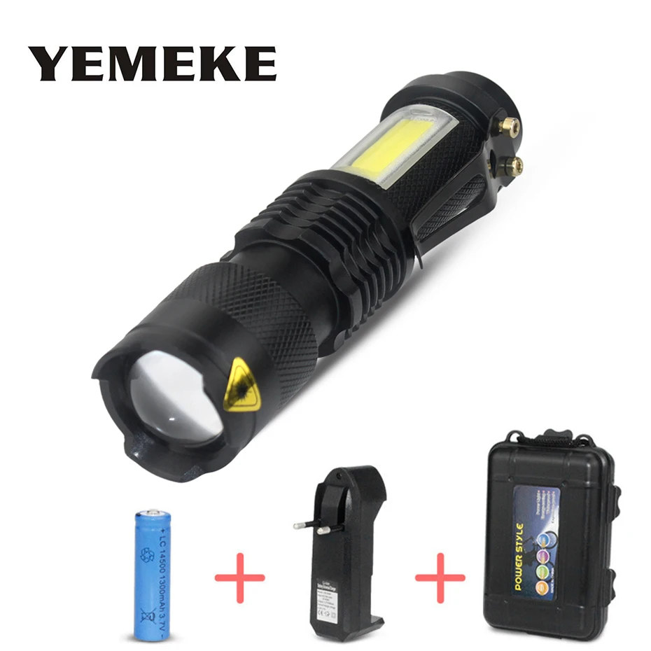 COB + XML Q5 светодио дный фонарик Портативный Мини Телескопический фонарь фонарик Применение AA/14500 Батарея 2000Lm открытый Водонепроницаемый свет...