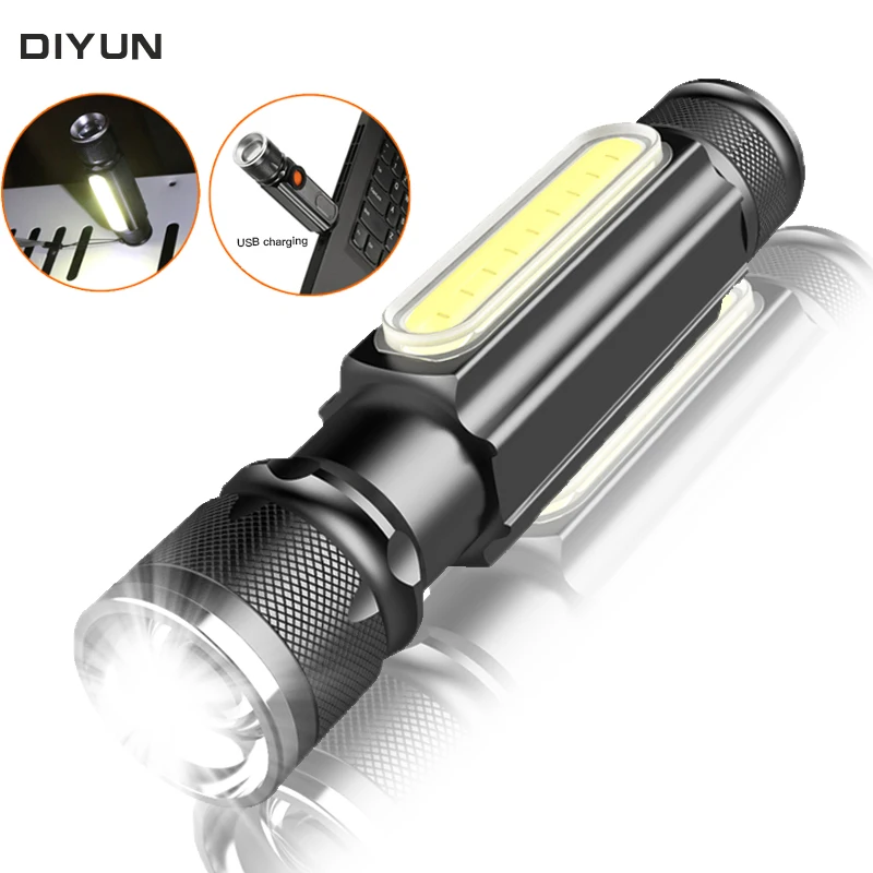USB Перезаряжаемый Фонарик 3 режима освещения COB + XPE светодиодный мини-фонарик водонепроницаемый портативный используется для кемпинга, велоспорта, работы и т. д.
