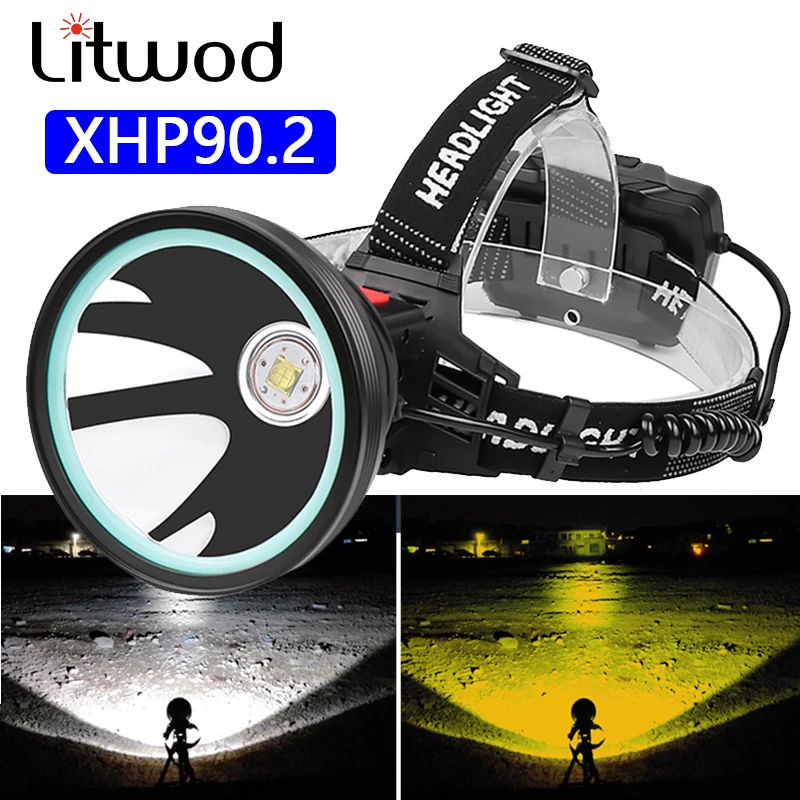 XHP90.2 светодиодный налобный фонарь белого и желтого цвета, осветительный Головной фонарь, 3 режима, фонарик, фонарь, 32 Вт, лампы, 3*18650 батареи, лучший для кемпинга