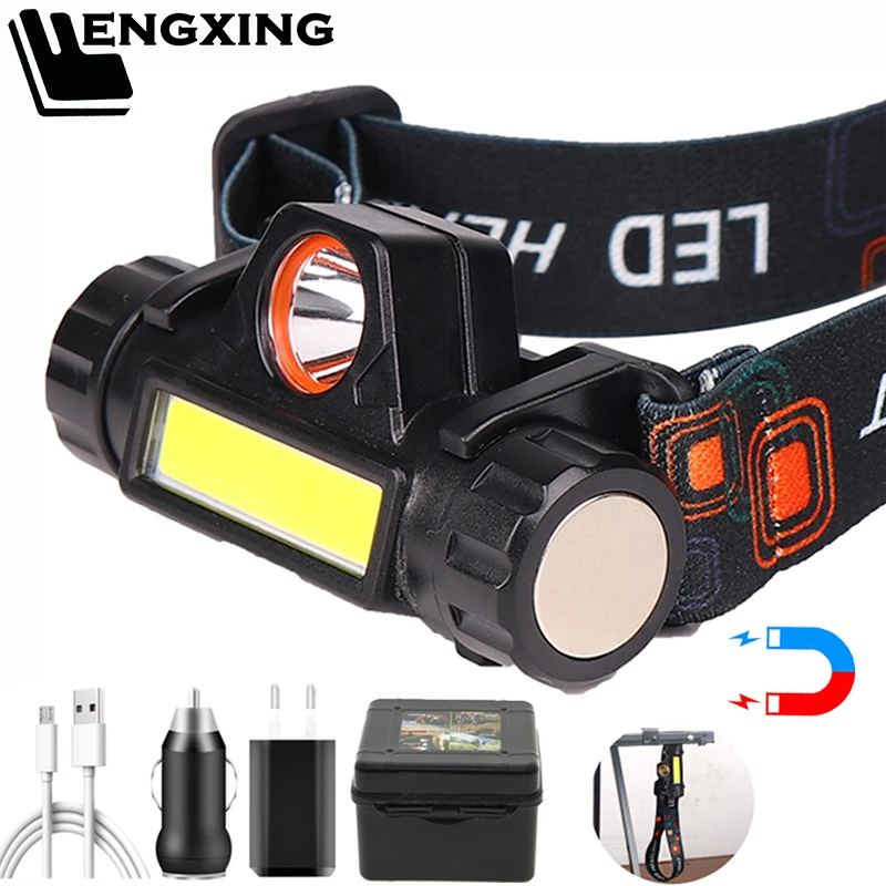Портативные светодиодные фары XP-G Q5 Встроенные 18650 Водонепроницаемого Фара COB Режим освещения Светой работы 2 кемпинг Факел Head Lamp