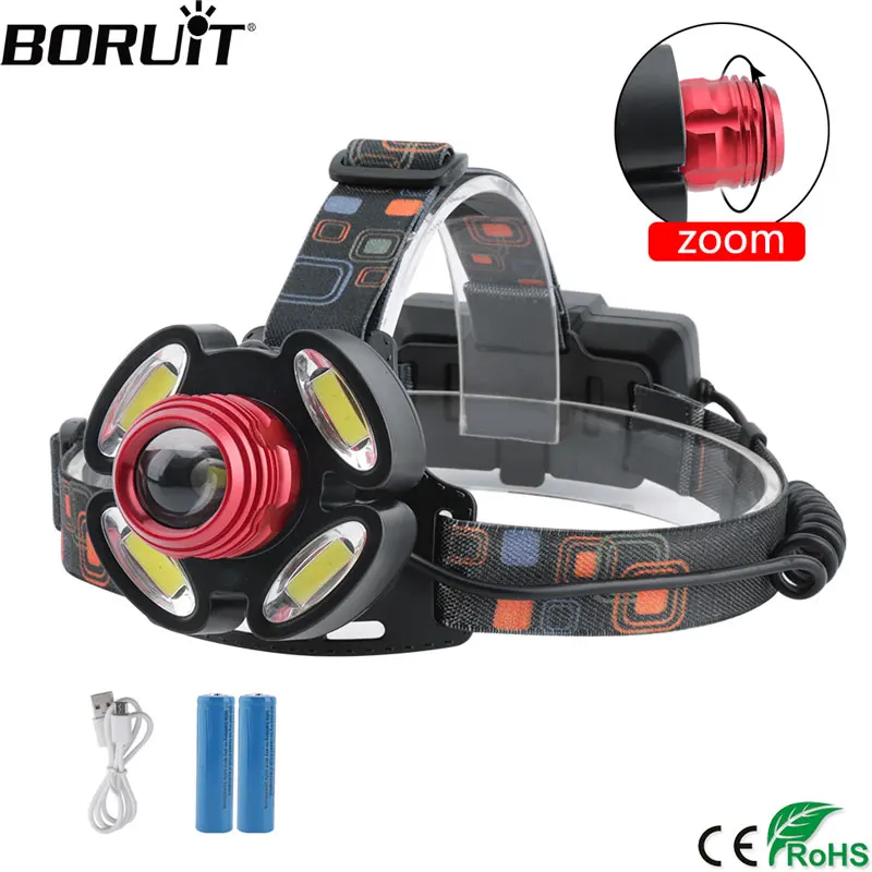 BORUIT T6 светодиодный налобный фонарик COB 4 режима Масштабируемые фар USB Зарядное устройство Применение 18650 Батарея Глава Факел Водонепроницае...