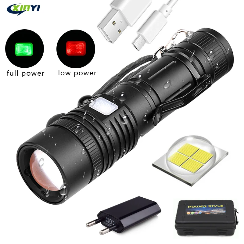 XHP70 светодиодный фонарик, масштабируемый фонарь, тактический фонарик, перезаряжаемый через USB фонарик XHP50, фонарик с батареей 18650 26650