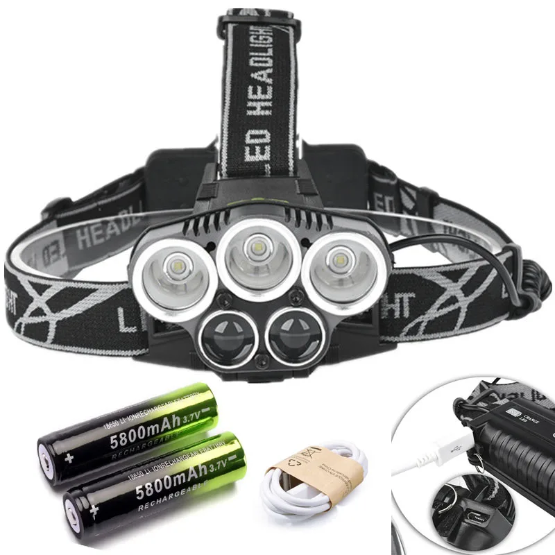 USB Перезаряжаемый светодиодный налобный фонарь 5 белый свет или 3 белый + 2 голубой свет 15000 люмен светодиодный фар промысел лампы использоват...