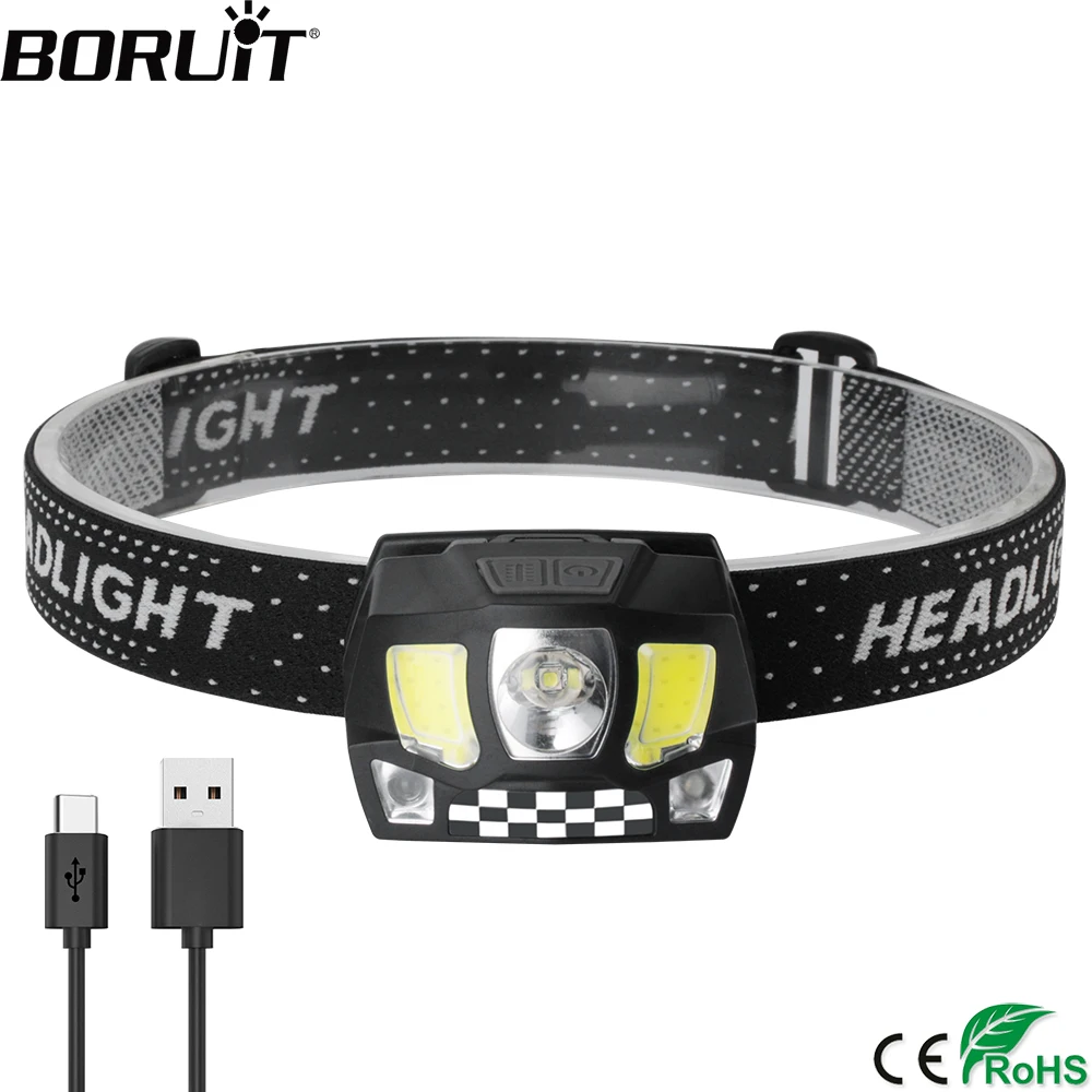 BORUiT XPG COB светодиодный 1000Lm Перезаряжаемые налобный мини-фонарь ИК движения Сенсор Фара 5-режимами налобный фонарь для кемпинга