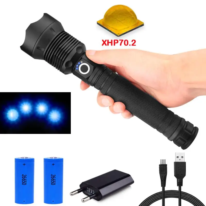 150000 лм XHP70.2 самый мощный светодиодный фонарик usb зум тактический фонарь xhp50 18650 или 26650 перезаряжаемый аккумулятор ручной свет 2 года гарантии...