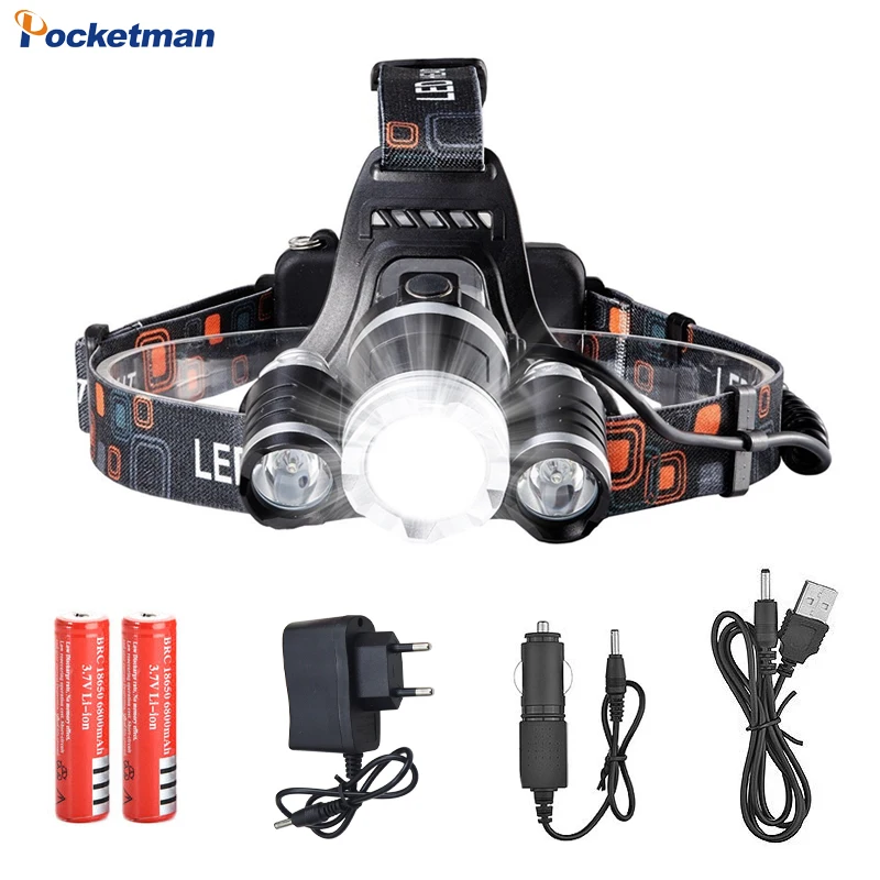 9000LM налобный фонарь светодиодный 3x XM-L T6 Водонепроницаемый 4 режима светодиодный налобный фонарь факел свет для 18650 Перезаряжаемые Батарея