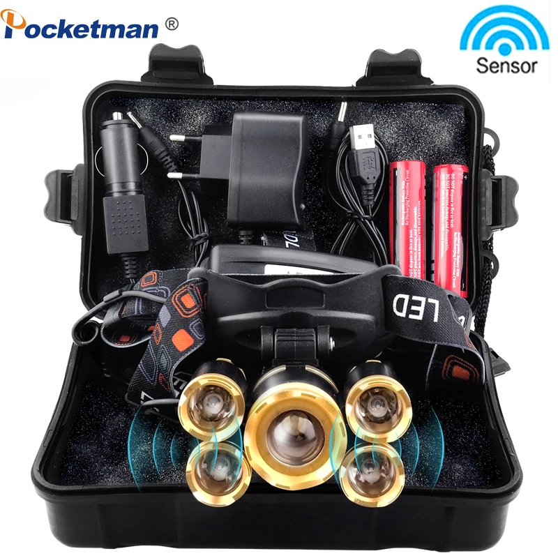8000лм ИК-датчик светодиодный налобный фонарь умный светильник 5/3 T6 Zoom Высокая мощность перезаряжаемый фонарь для рыбалки 18650 налобный фонарь Водонепроницаемый