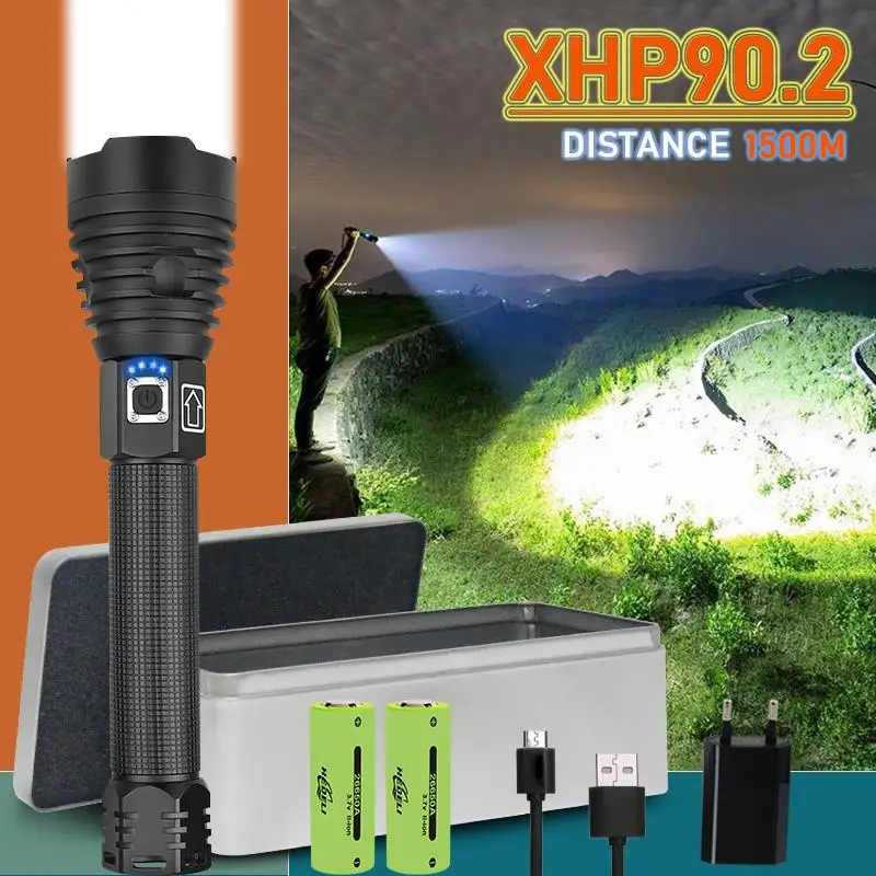Новый Яркий xhp90.2 самый мощный светодиодный светильник-вспышка usb фонарь xhp70 xhp50 18650 или 26650 перезаряжаемый охотничий светильник-вспышка ручна...