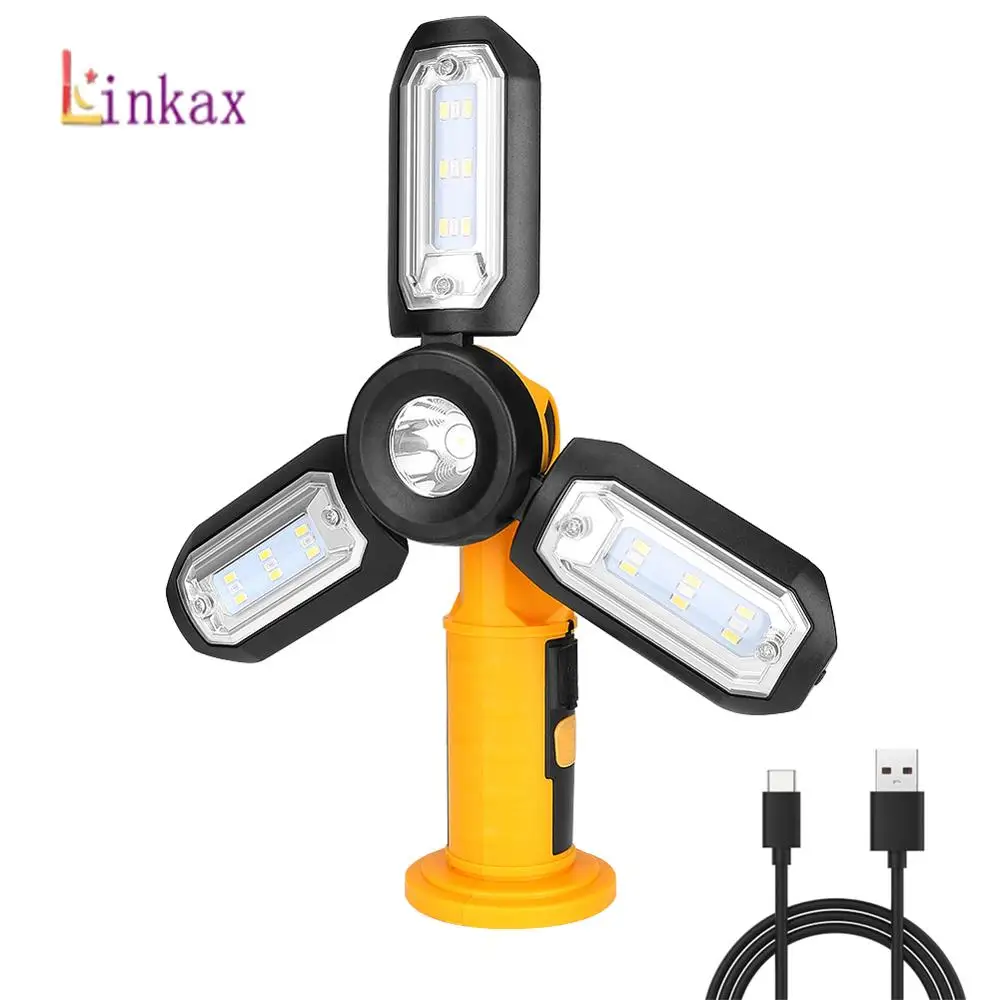 Новый SMD светодиодный складной фонарик факел USB перезаряжаемый портативный фонарь рабочий свет магнитный подвесной крючок лампа для наружн...