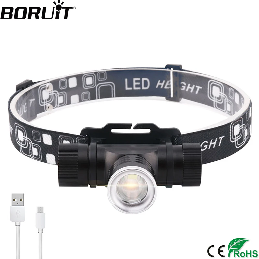 BORUIT 1000LM T6 светодиодный налобный фонарь 3-режим Масштабируемые фар USB Зарядное устройство 18650 Батарея Глава Факел Водонепроницаемый фонарик