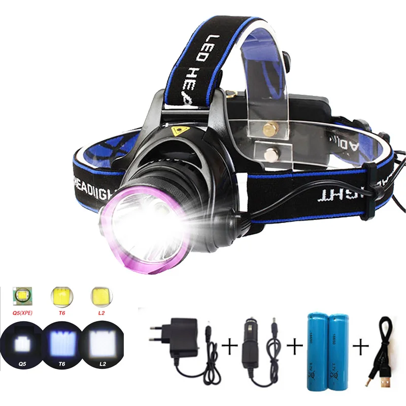 Высокая Мощность светодио дный фары фара Q5 T6 L2 светодио дный Глава лампы факел фонарик лампе фронтальные яркий для охоты рыбалки кемпинг