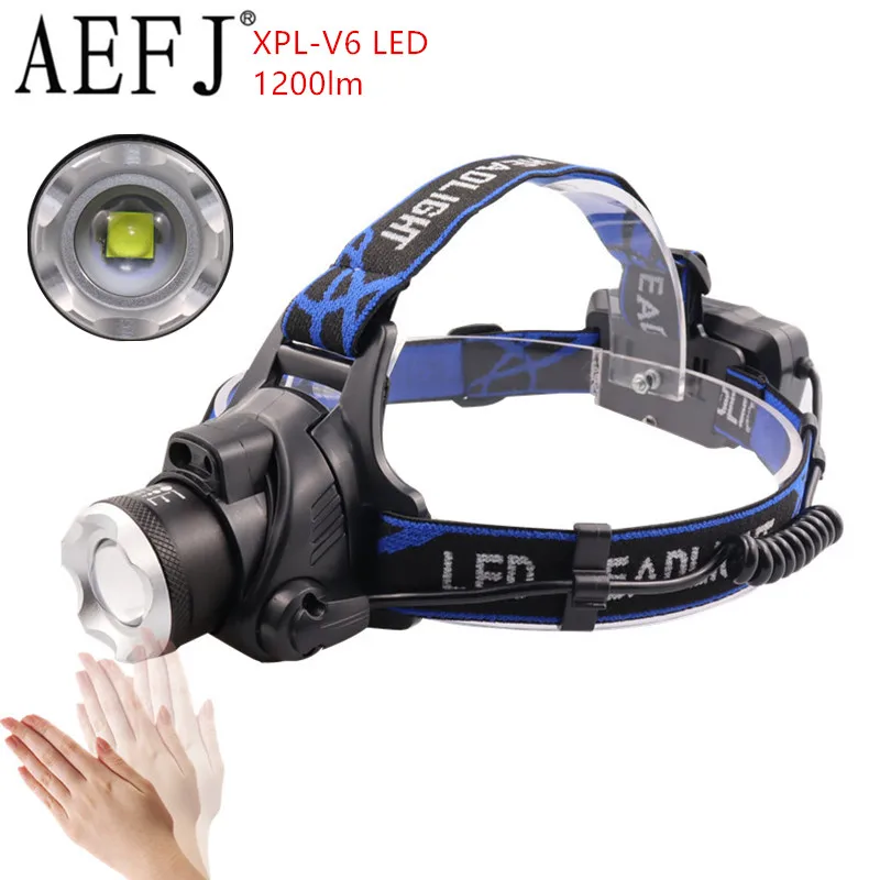 AEFJ 1200LM светодиодный XPL-V6/L2/T6 10 Вт налобный фонарь с ИК-датчиком, налобный светильник, индукционный, масштабируемый, 3 режима, светодиодный светильник фонарь, светильник