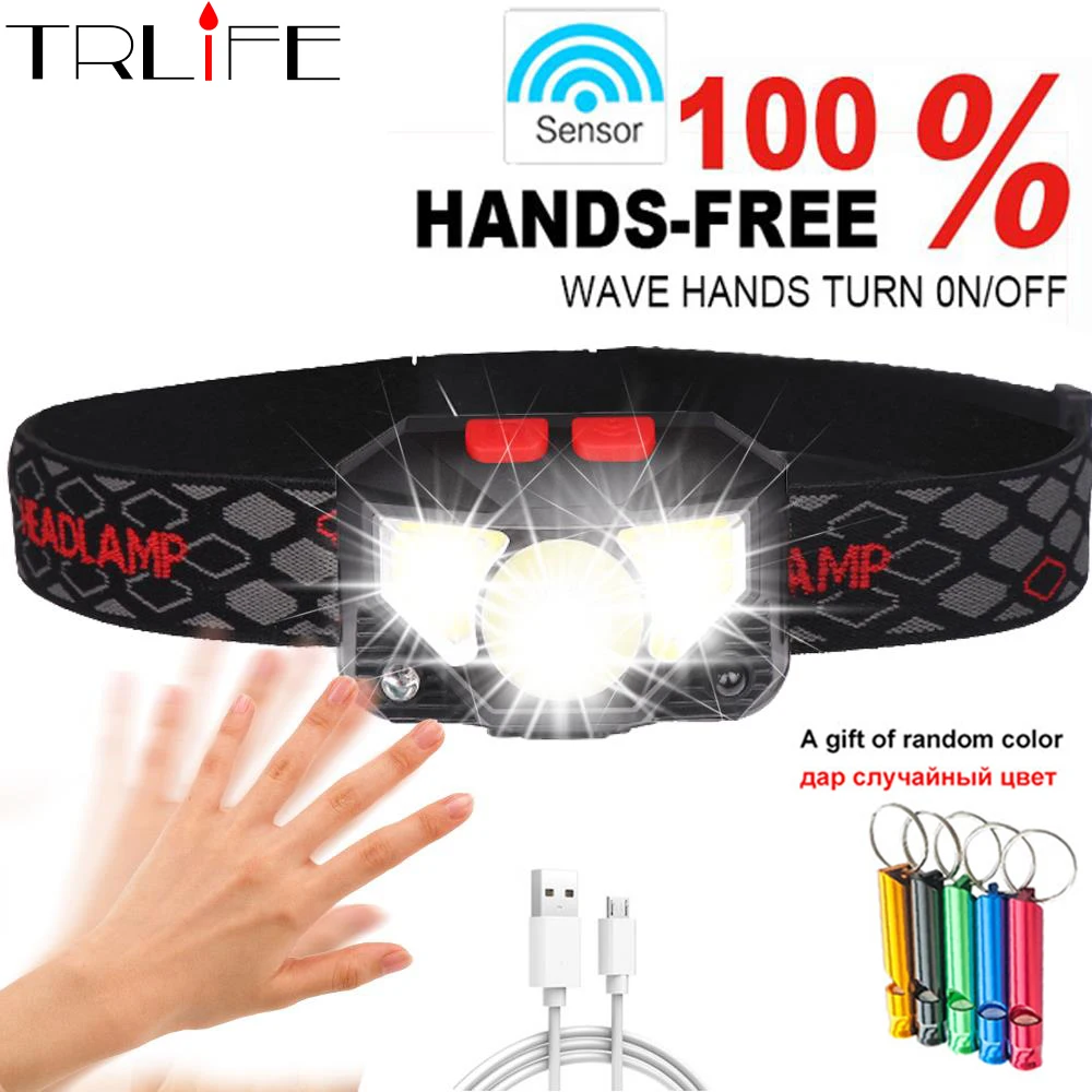 USB Перезаряжаемый светодиодный налобный фонарь встроенный датчик Водонепроницаемые фары с usb-кабелем для зарядки, супер яркий для активного отдыха