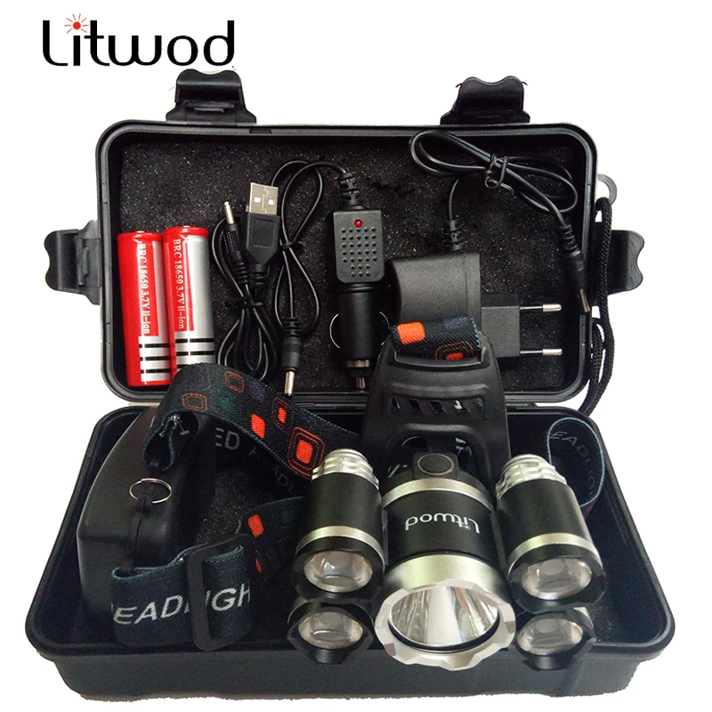 Litwod DZ30 3 T6 9000LM XM-L T6 светодиодный налобный фонарь фар 9000LM свет Фара фонарик фронтальный свет для аккумуляторов 18650