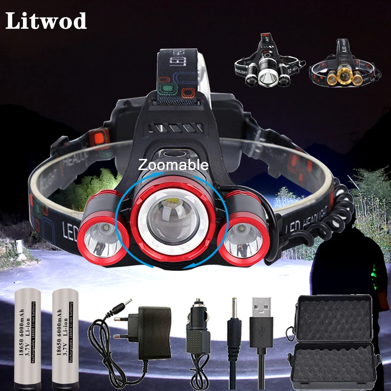 Litwod Z20 светодио дный фар 9000 люмен фары XM-L2 T6 светодио дный фонарик налобный фонарь фара для кемпинга/Охота