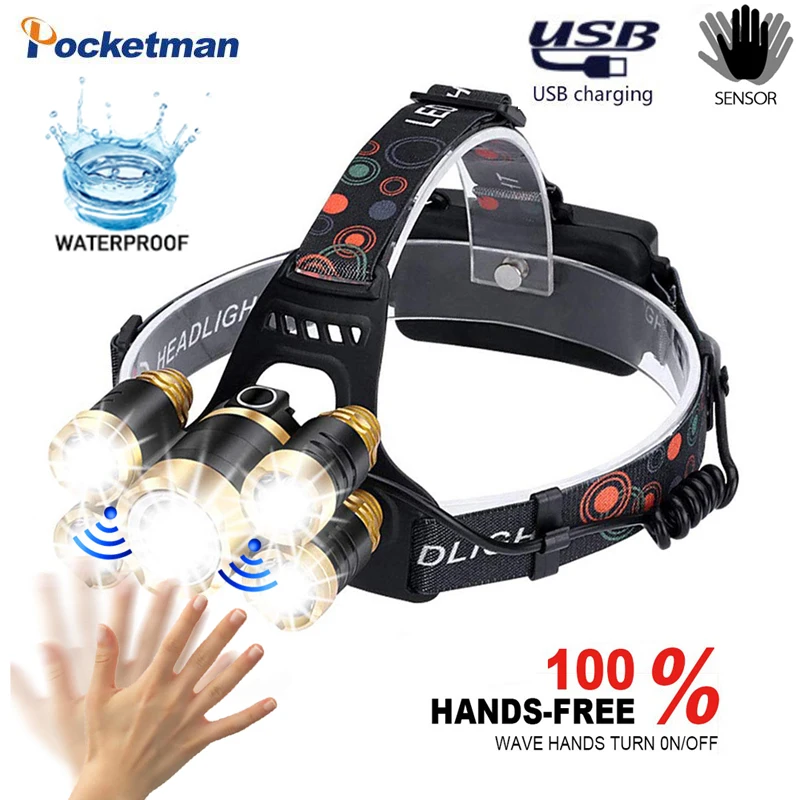 8000lums сенсор налобный фонарь USB заряжаемый светодиодный налобный фонарь индукционный мощный жесткий Головной фонарь движения водонепрониц...