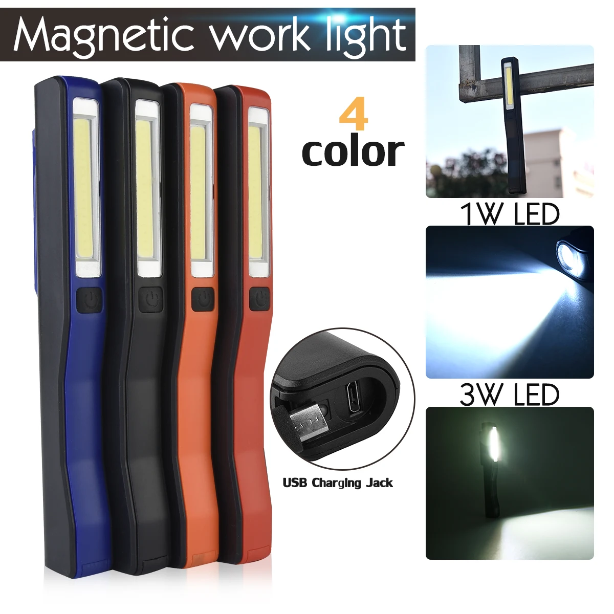 Портативный COB + XPE светодиодный фонарик USB Перезаряжаемый светодиодный красный и белый легкий магнит крюк Рабочий фонарь со встроенной бата...