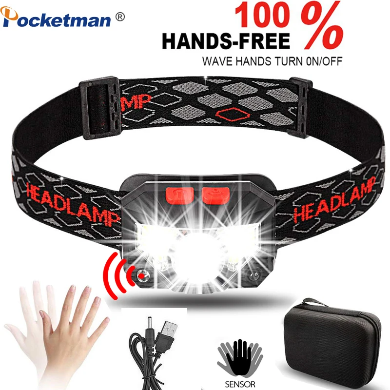 ZK20 5000LM движения Датчик Индуктивный светодиодный фара Перезаряжаемые встроенный аккумулятор головы факел лампы Красный Рыбалка Свет