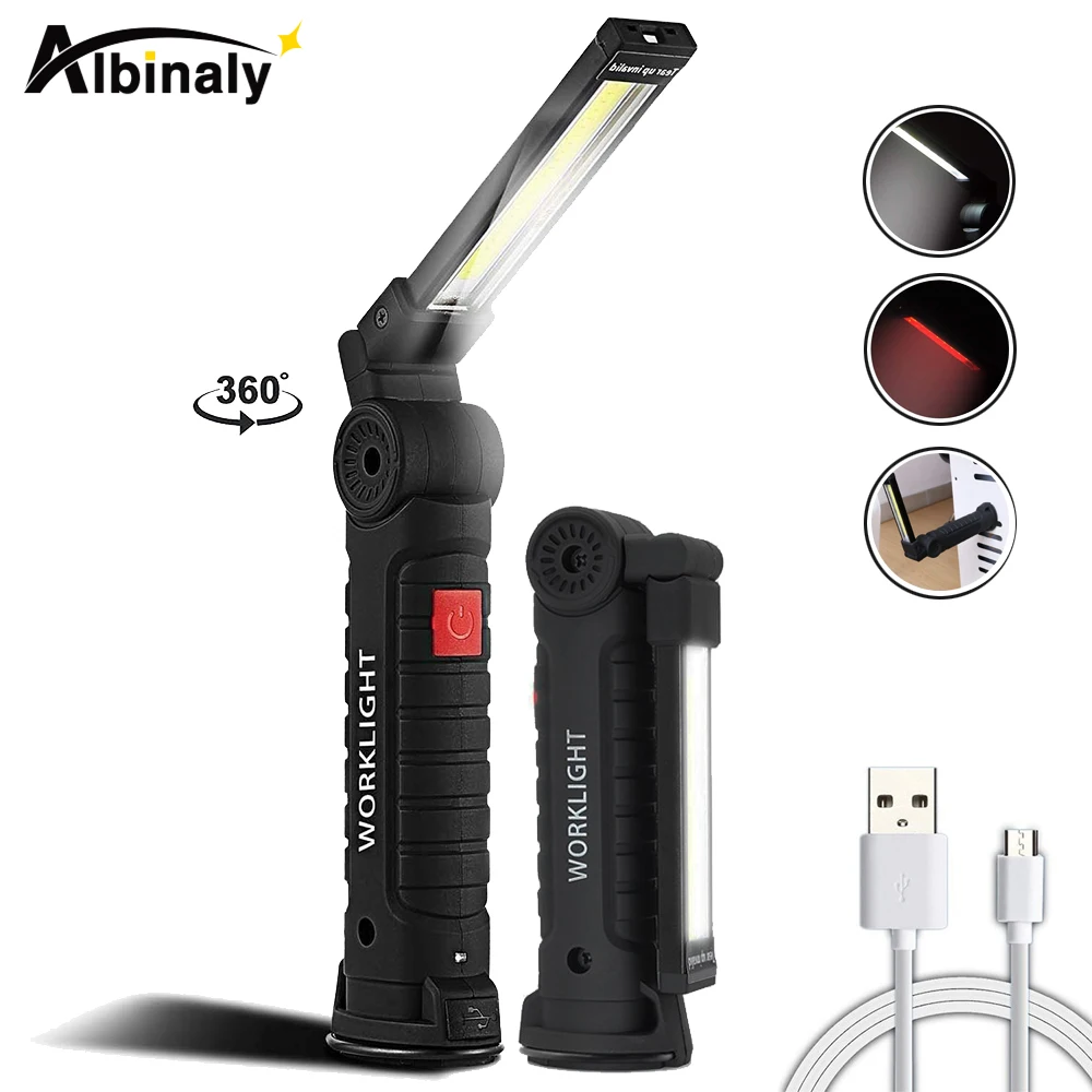 COB светодио дный светодиодный фонарик рабочий свет USB Перезаряжаемый инспекционный свет 5 режимов задний магнит дизайн подвесной фонарь лам...