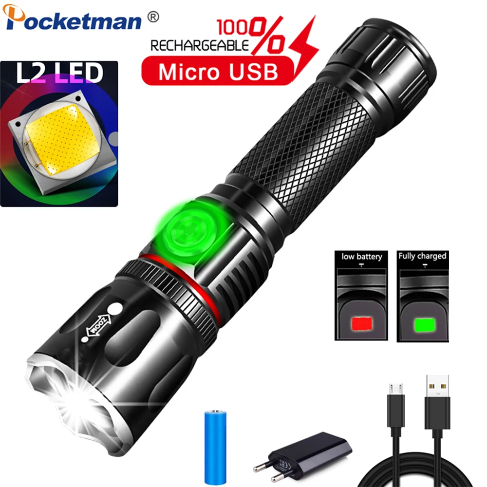 30000LM светодиодный фонарик L2 T6 USB Перезаряжаемый COB светодиодный фонарик Магнитный факел Zoom фонарик с 18650 батареей