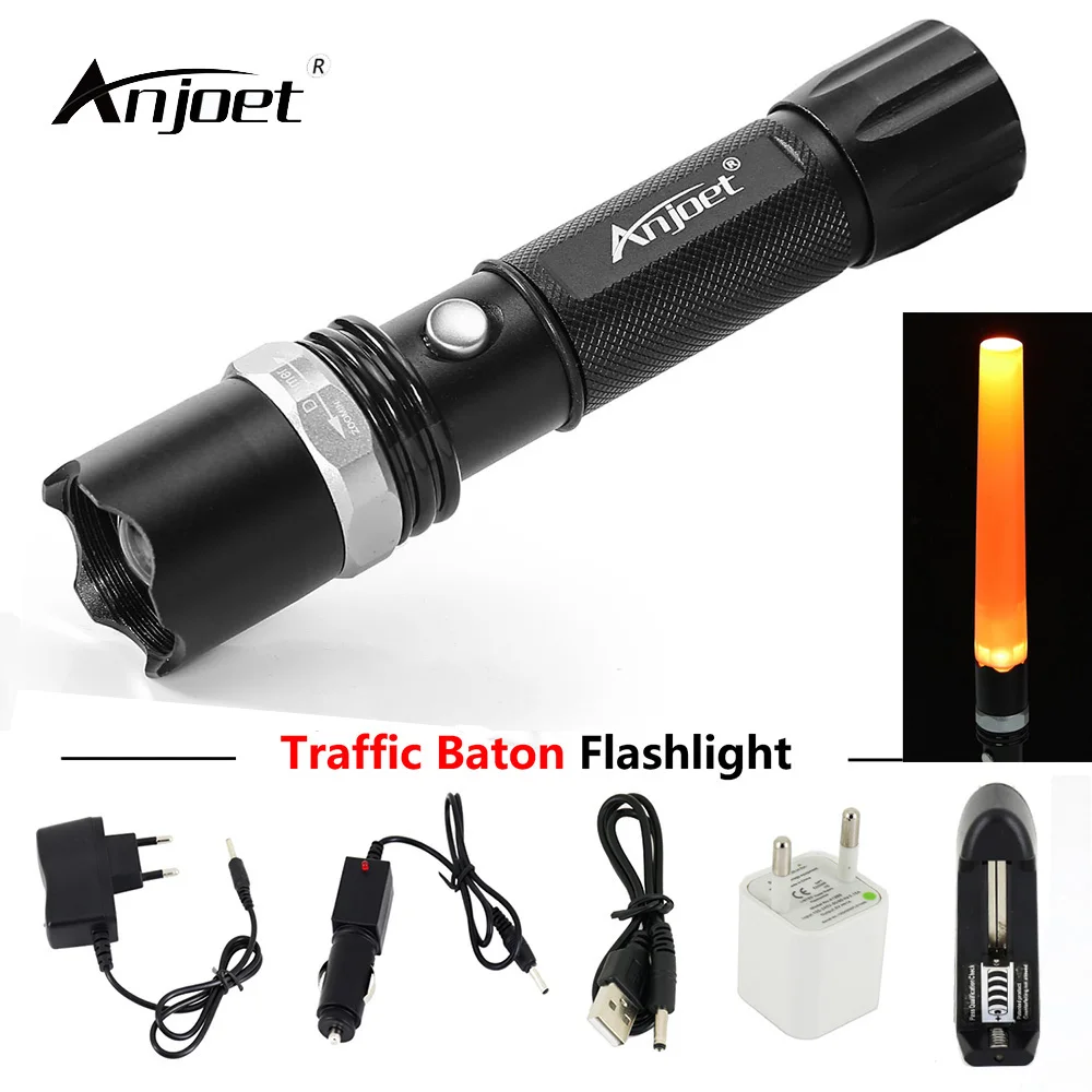 ANJOET регулировщик фонарик самообороны ламповой Фокус Регулируемая Q5 ГИБДД оборудование Красный Батон свет + зарядное устройство
