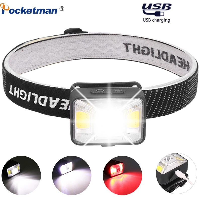 Мини 3800lm COB светодио дный светодиодный перезаряжаемый налобный фонарь палец индукционные фары головной свет лампа Встроенный 2000 мАч батаре...