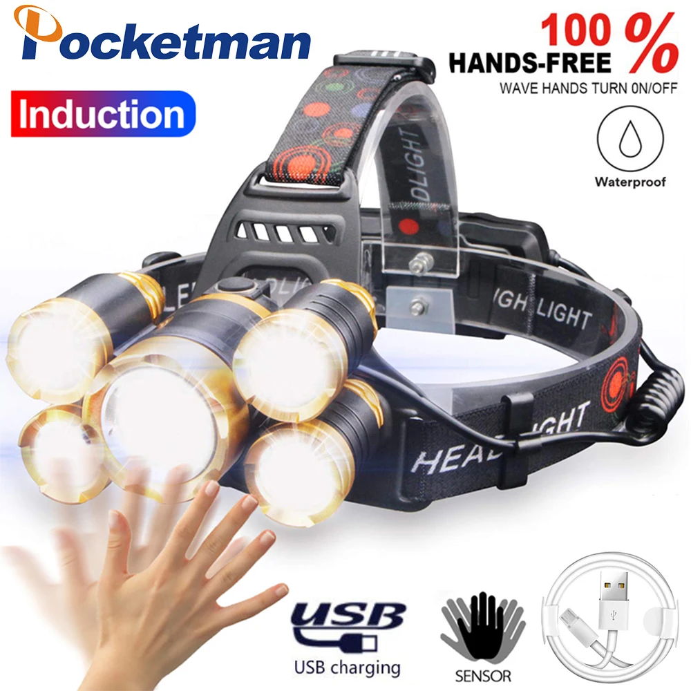 4000 люменов светодиодный налобный светильник с датчиком движения для тела, фонарь светильник для кемпинга с USB, лучший для кемпинга, рыбалки