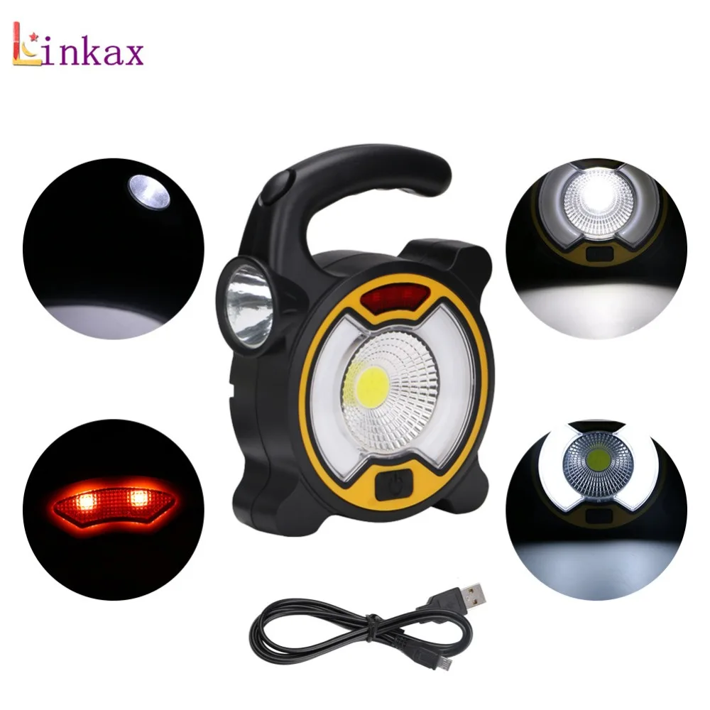 USB Перезаряжаемые COB светодиодный рабочий светильник Кемпинг светодиодная вспышка светильник Водонепроницаемый фонарь встроенный Батарея Фонари Linternas с магнитом/крюк