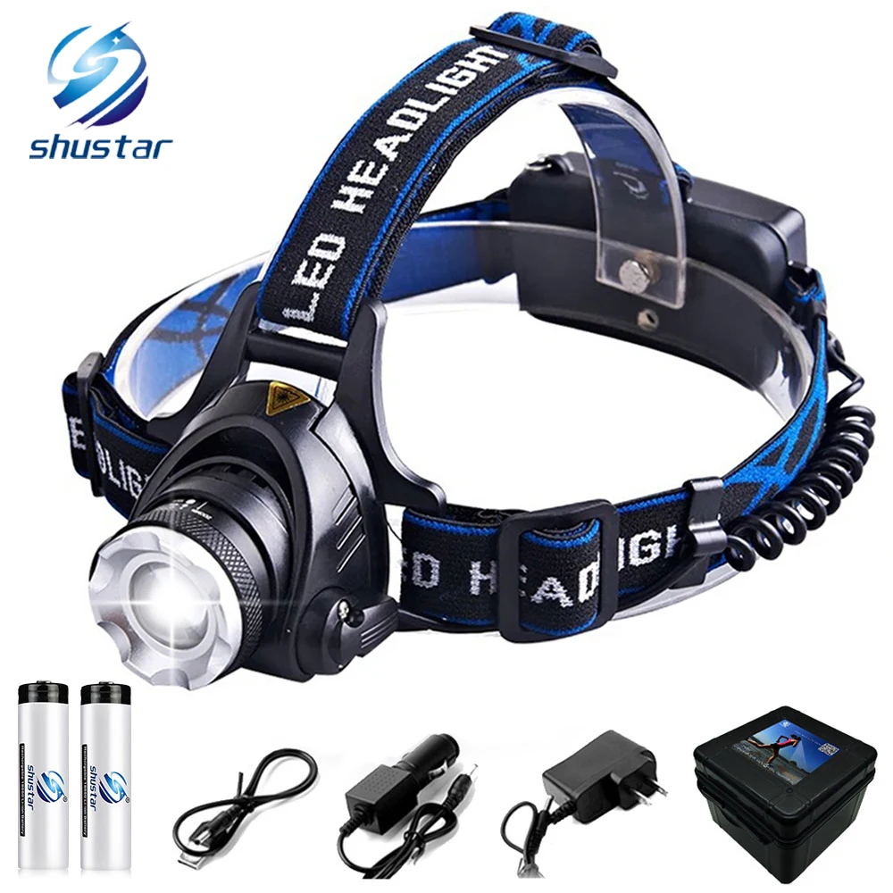 6000 люмен светодио дный фары T6/L2 светодио дный фар 4 режима зум Водонепроницаемый фара Рыбалка Охота Применение 2 18650 батареи