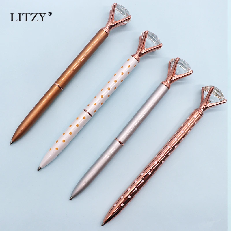 Большой камень шариковая ручка Роскошный кристалл розового золота с бриллиантами Ручки для школы записи канцелярские инструменты офиса